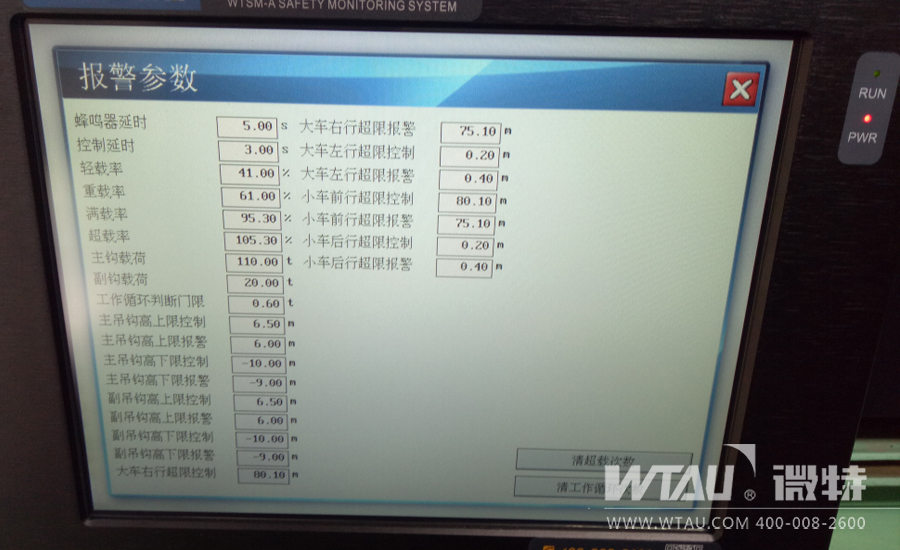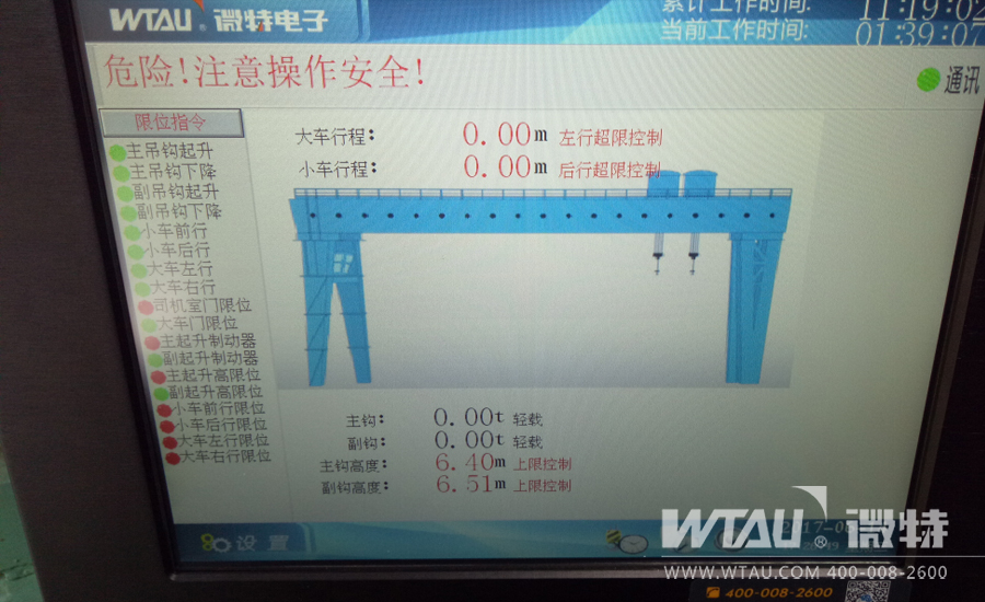 對橋機起重量、起升高度、運行行程、機械限位、操作指令監(jiān)控