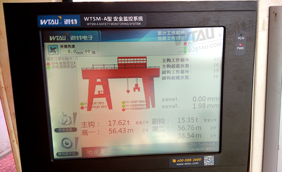 微特安全監(jiān)控系統(tǒng),對門機(jī)運(yùn)行工況進(jìn)行實(shí)時(shí)采集,實(shí)時(shí)記錄。進(jìn)行數(shù)據(jù)核算比對,顯示畫面比傳統(tǒng)儀表更直觀、更友好。在門機(jī)運(yùn)行接近限定值、規(guī)定值,系統(tǒng)將對司機(jī)做出提醒,在到達(dá)限定值時(shí)將警告司機(jī),并停止司機(jī)的危險(xiǎn)操作。