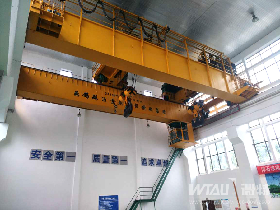 浮石電站的大型吊裝設(shè)備有廠房2×100/25T橋機一臺,主要用于日常廠房設(shè)備及轉(zhuǎn)子吊裝;尾水2×63T/10T門機一臺,主要用于尾水閘門吊裝。