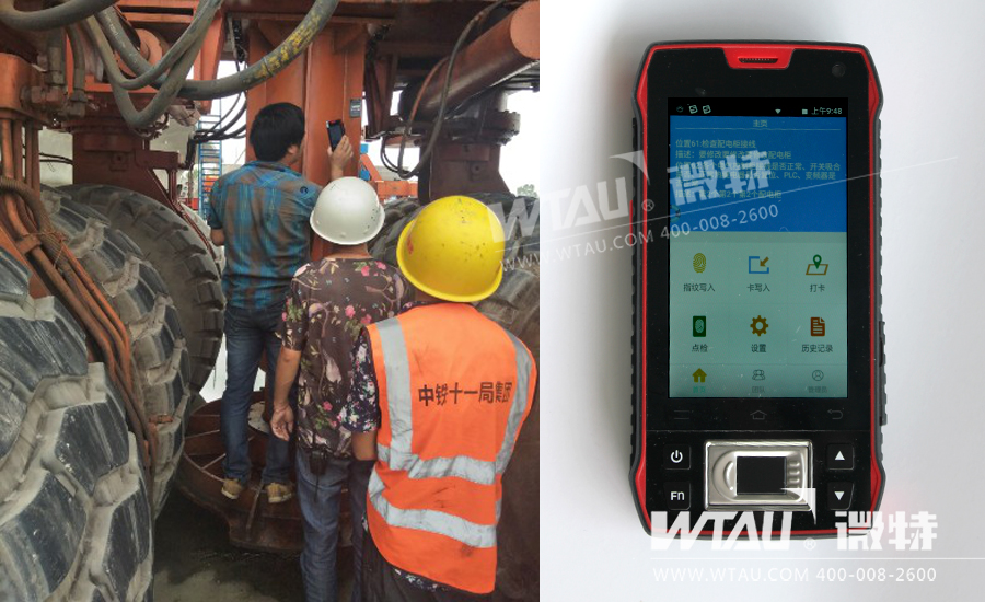 圖為微特售后服務(wù)工程師現(xiàn)場指導(dǎo)使用PDA點(diǎn)檢系統(tǒng)