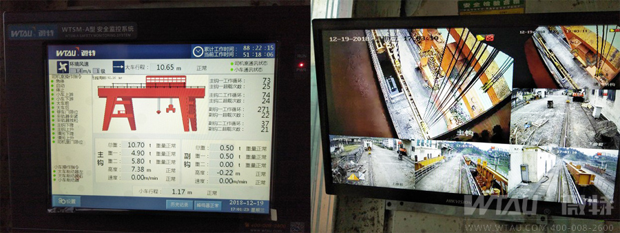 改造后的門機安全監(jiān)控系統(tǒng)主機部分及實時視頻監(jiān)控顯示