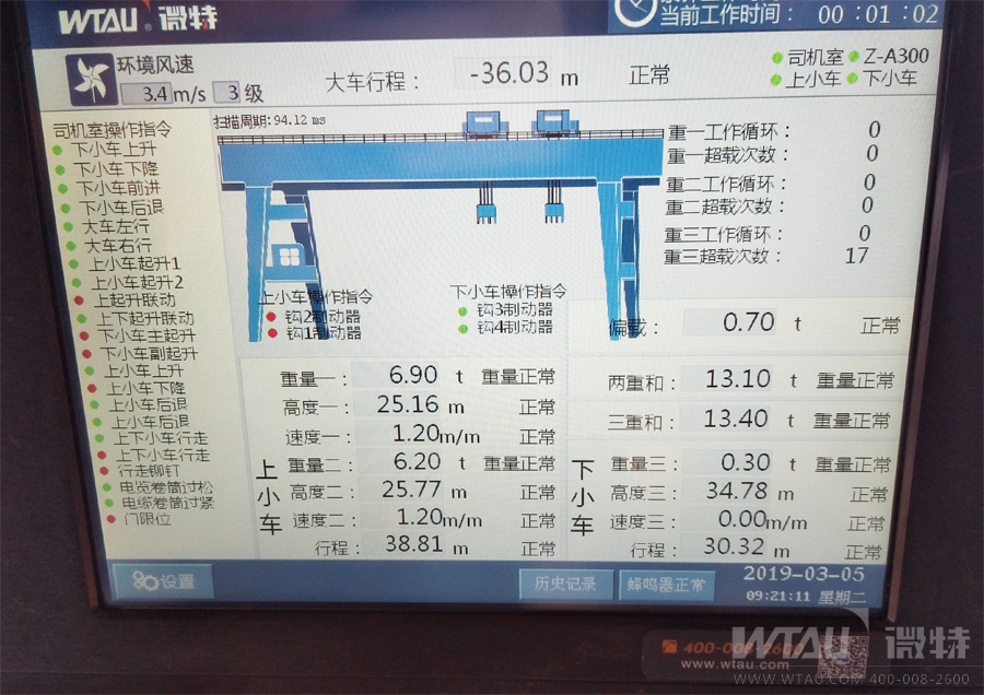 微特WTSM-A型龍門(mén)吊安全監(jiān)控系統(tǒng)具有實(shí)時(shí)監(jiān)控機(jī)械運(yùn)行狀態(tài)和操作行為,對(duì)設(shè)備可能出現(xiàn)的異常狀態(tài)、非正常操作等進(jìn)行聲、光報(bào)警,并全過(guò)程記錄,保證機(jī)械設(shè)備的安全、穩(wěn)定運(yùn)行,減少安全事故發(fā)生,便于事故追溯,提高安全管理水平。