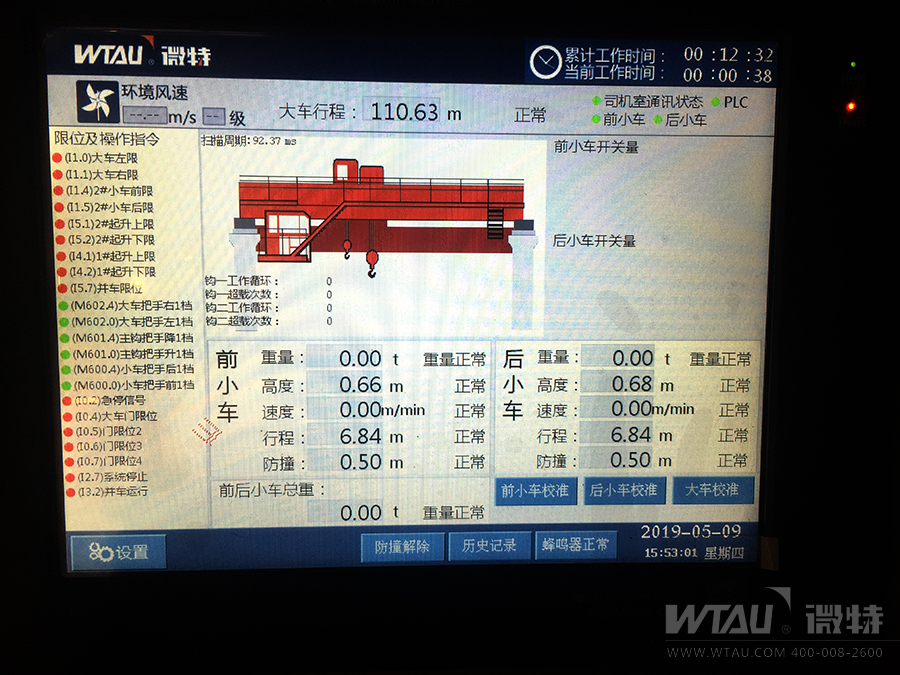 通過加裝安全監(jiān)控系統(tǒng)后,實現(xiàn)了對設備整個控制系統(tǒng)運行的各個環(huán)節(jié)和重要安全狀態(tài)的實時監(jiān)測,同時系統(tǒng)預警功能可提示操作人員。設備操作人員能通過此系統(tǒng)在設備運行過程中,對各個機構安全狀態(tài)參數(shù)有一個全面而直觀的了解。