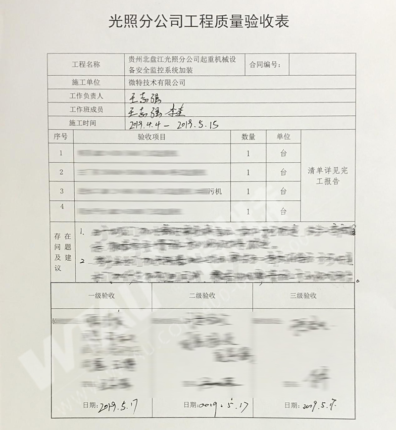 貴州北盤江光照分公司安全監(jiān)控系統(tǒng)加裝項目在客戶要求定檢時間前完工并且一次性通過電廠內(nèi)部三級驗收且無整改項目,驗收現(xiàn)場得到客戶肯定。同時,項目已順利通過黔西南特種設備監(jiān)督檢驗。