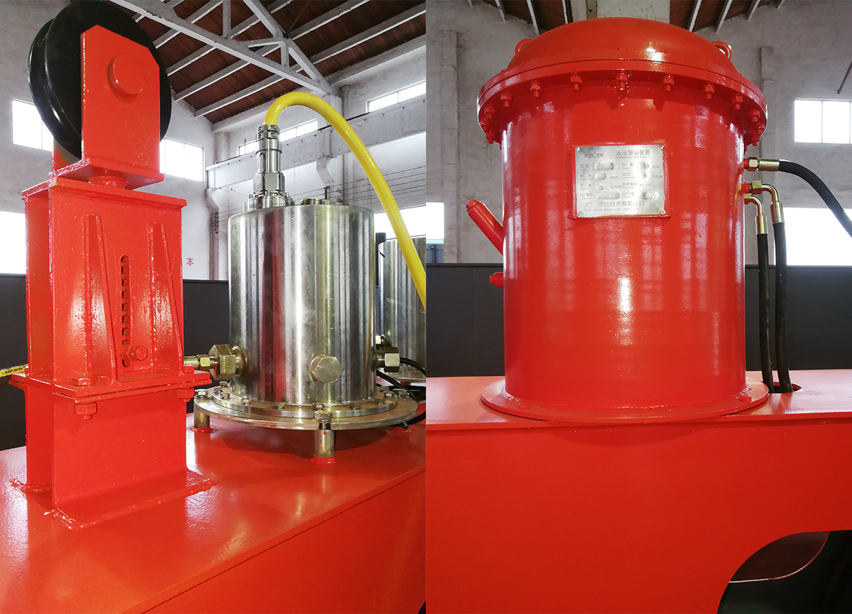 ▲液壓泵站(左)、防水密封盒及導(dǎo)覽裝置(右)