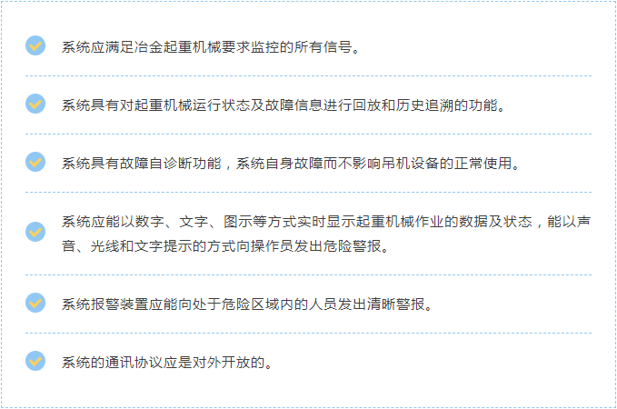 同時,系統(tǒng)根據(jù)最新國家標(biāo)準(zhǔn)《起重機(jī)械 安全監(jiān)控管理系統(tǒng)》GB/T 28264-2017實施,需滿足如下基本功能要求。