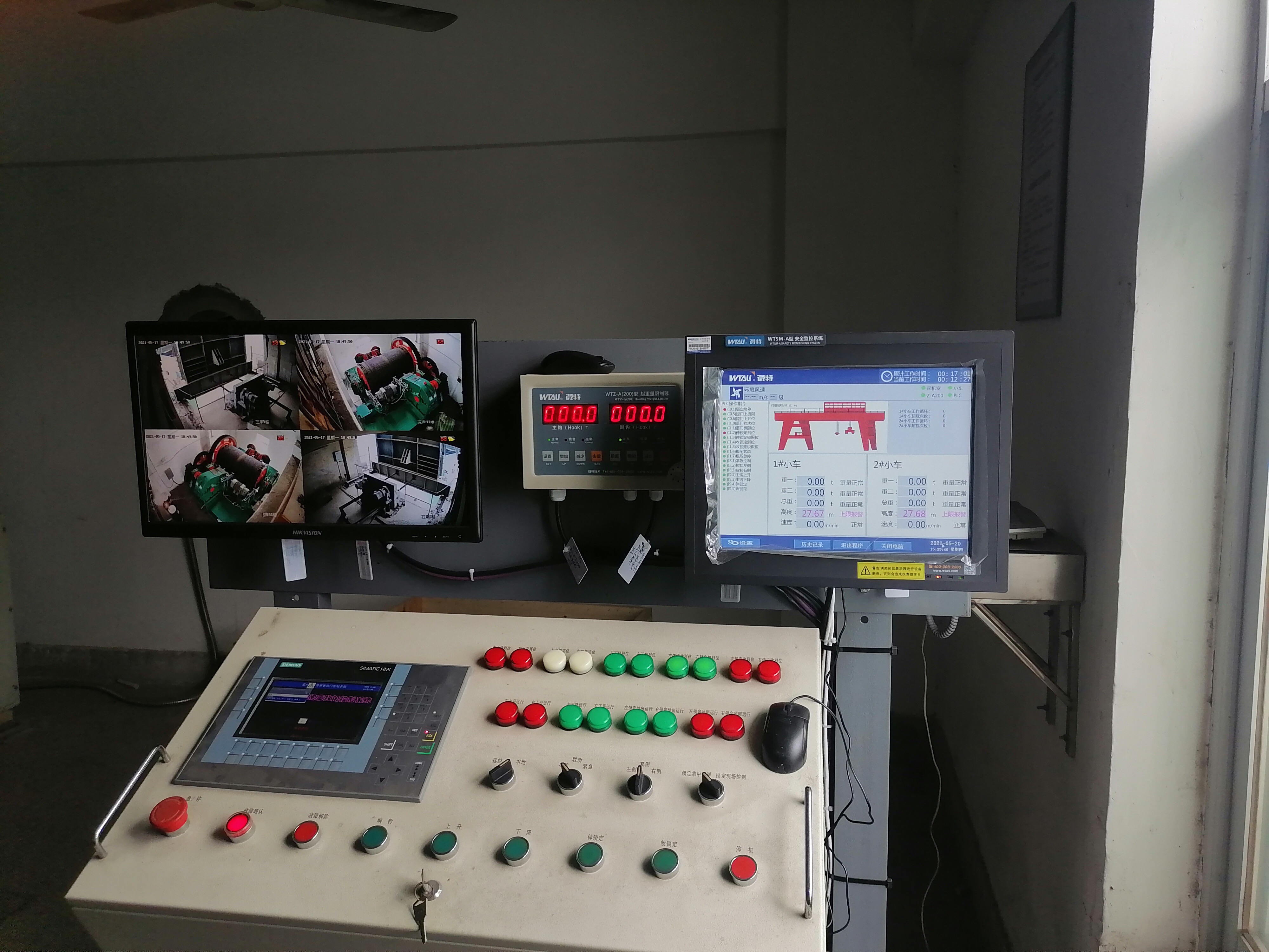 經(jīng)過微特技術(shù)人員和客戶商定采用無線網(wǎng)橋來進(jìn)行數(shù)據(jù)傳輸。本次安裝WTSM-A型的監(jiān)控系統(tǒng),可實(shí)時(shí)監(jiān)控起重機(jī)的吊鉤高度、重量等,亦可實(shí)時(shí)記錄和顯示起重機(jī)的操作指令限位等數(shù)據(jù)。