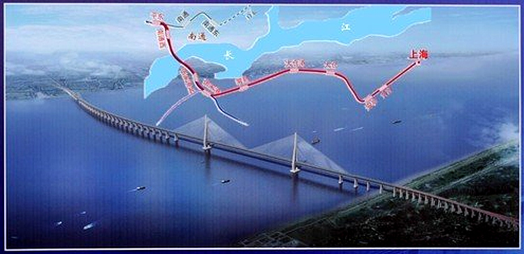注:滬通長江大橋是新建滬通鐵路的關鍵性和控制性工程。滬通長江大橋主塔高達325米,主航道橋主跨1092米。大橋分上下兩層,下層為四線鐵路,上層為六車道高速公路,集國鐵、城際鐵路和高速公路三項功能于一體。全長約11.07公里,總投資150多億元,滬通長江大橋是現(xiàn)今世界最大跨度的公路鐵路兩用斜拉橋,也是世界首座跨度超過千米的公路鐵路兩用橋梁,工程預計2018年8月竣工。