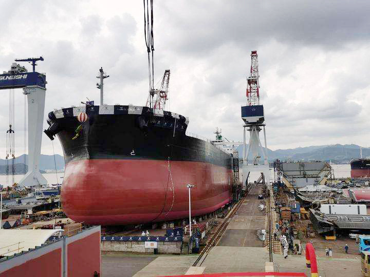 2020年9月,常石集團(tuán)(舟山)造船有限公司新造的一艘近10萬(wàn)噸級(jí)散貨船下水。今年以來(lái),該公司交船13艘,產(chǎn)值已超25億元,比去年同期有所增長(zhǎng)。