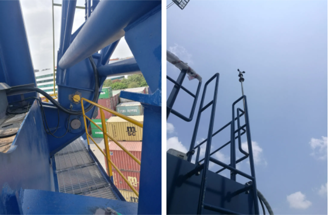 微特此次與中藝重工合作主要是為新裝固定式門座機(jī)安裝力矩限制器,在經(jīng)過項目前期的溝通洽談確定安裝方案后,微特售后工程師奔赴中山在現(xiàn)場人員配合下進(jìn)行儀表的安裝調(diào)試工作。