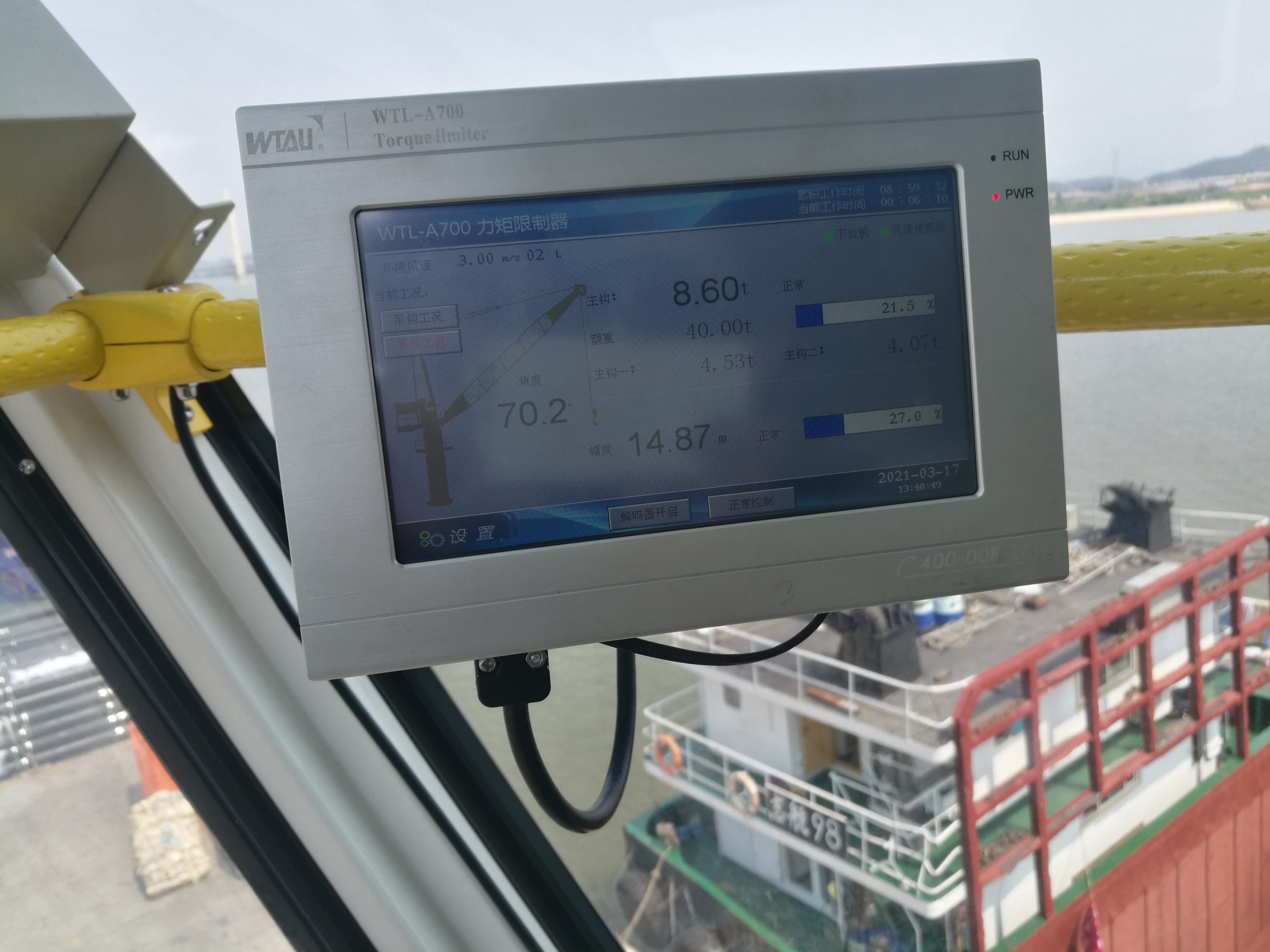 此次為廣東中藝固定式門座機(jī)配備的新WTL-A700力矩限制器就是微特主要針對固定式門座機(jī)研發(fā),生產(chǎn)的一款實用性非常強(qiáng)的儀表,采用觸摸屏屏顯示,用于四路以下重量信號和一路角度一路風(fēng)速信號的監(jiān)控。