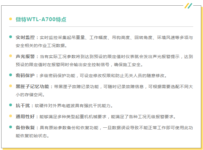 微特作為起重機(jī)安全監(jiān)控管理系統(tǒng)品牌的領(lǐng)導(dǎo)者,一直致力于為客戶提供有價值的產(chǎn)品和服務(wù)。希望通過我們的產(chǎn)品將起重機(jī)安全事故率降到最低,為客戶提供更加可靠的安全管理解決方案。