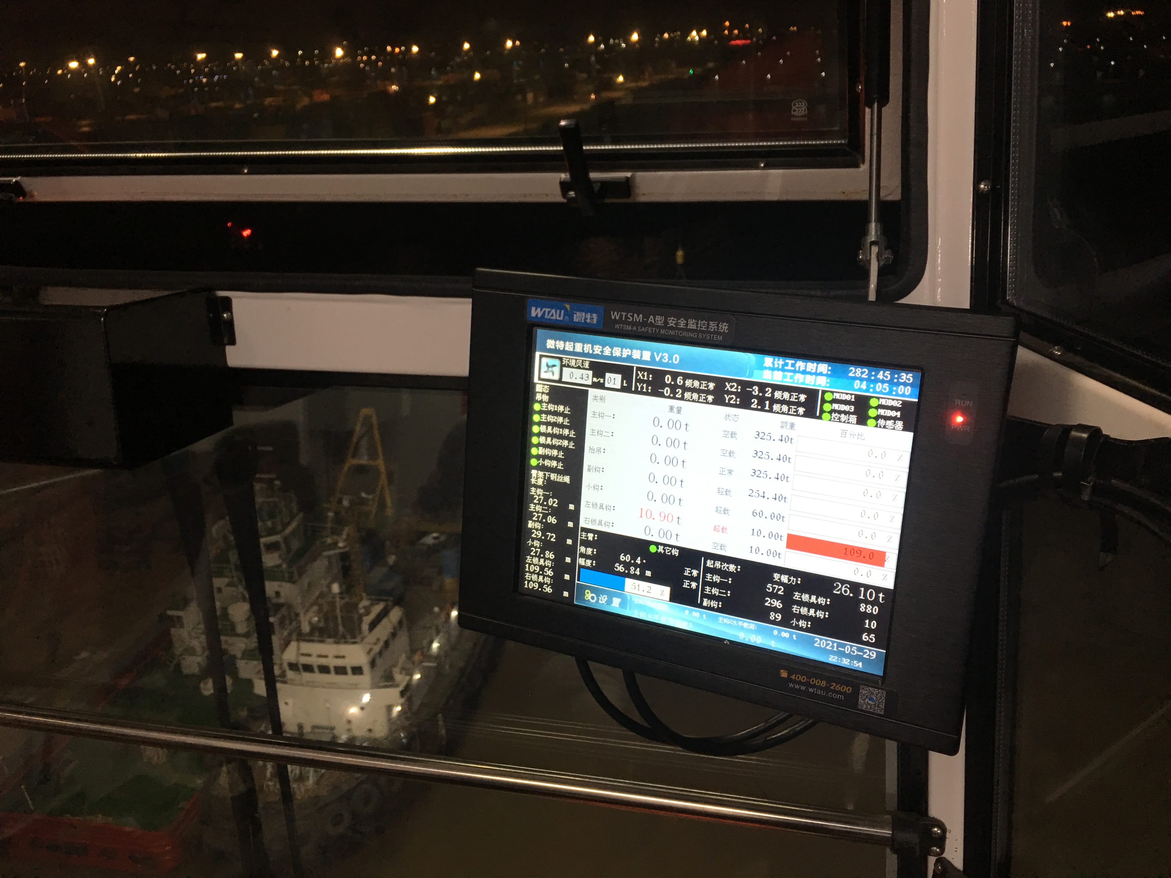 此次加裝的微特WTSM-A型安全監(jiān)控系統(tǒng)是嚴格按照海工吊的要求進行設計的,包括主機、電控箱、各傳感器的選型等都嚴格滿足海洋環(huán)境的工作要求。
