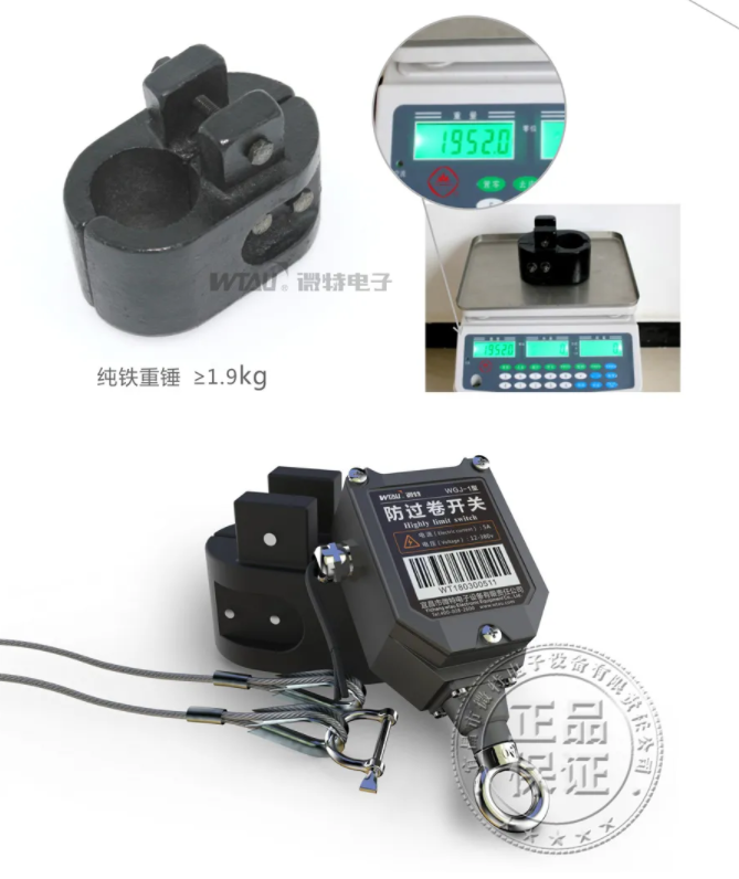 WGJ型防過卷開關(鉤頭限位開關/重錘限位開關),是用于起重機械鋼絲繩防過卷限位的一種電器自動保護開關。它與一適當重量的重錘配套,利用吊鉤的上下運動托起或放下重錘時斷開或導通開關,實現(xiàn)自動切斷卷揚機動力電源連通剎車系統(tǒng),達到限制鋼絲繩過卷的目的,以及達到吊鉤在一定高度內(nèi)升降的目的。