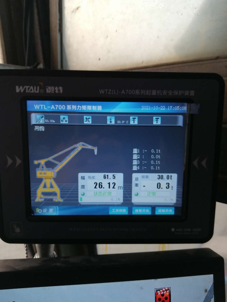 力矩限制器工作后,為客戶實(shí)時(shí)提供門座機(jī)工作狀態(tài)信息,對(duì)起吊超載、風(fēng)速超速、力矩超最大、最小幅度進(jìn)行報(bào)警斷電保護(hù),幫助門座機(jī)實(shí)現(xiàn)高效作業(yè)和更安全的起重保障。目前,項(xiàng)目已經(jīng)完成驗(yàn)收投入使用。