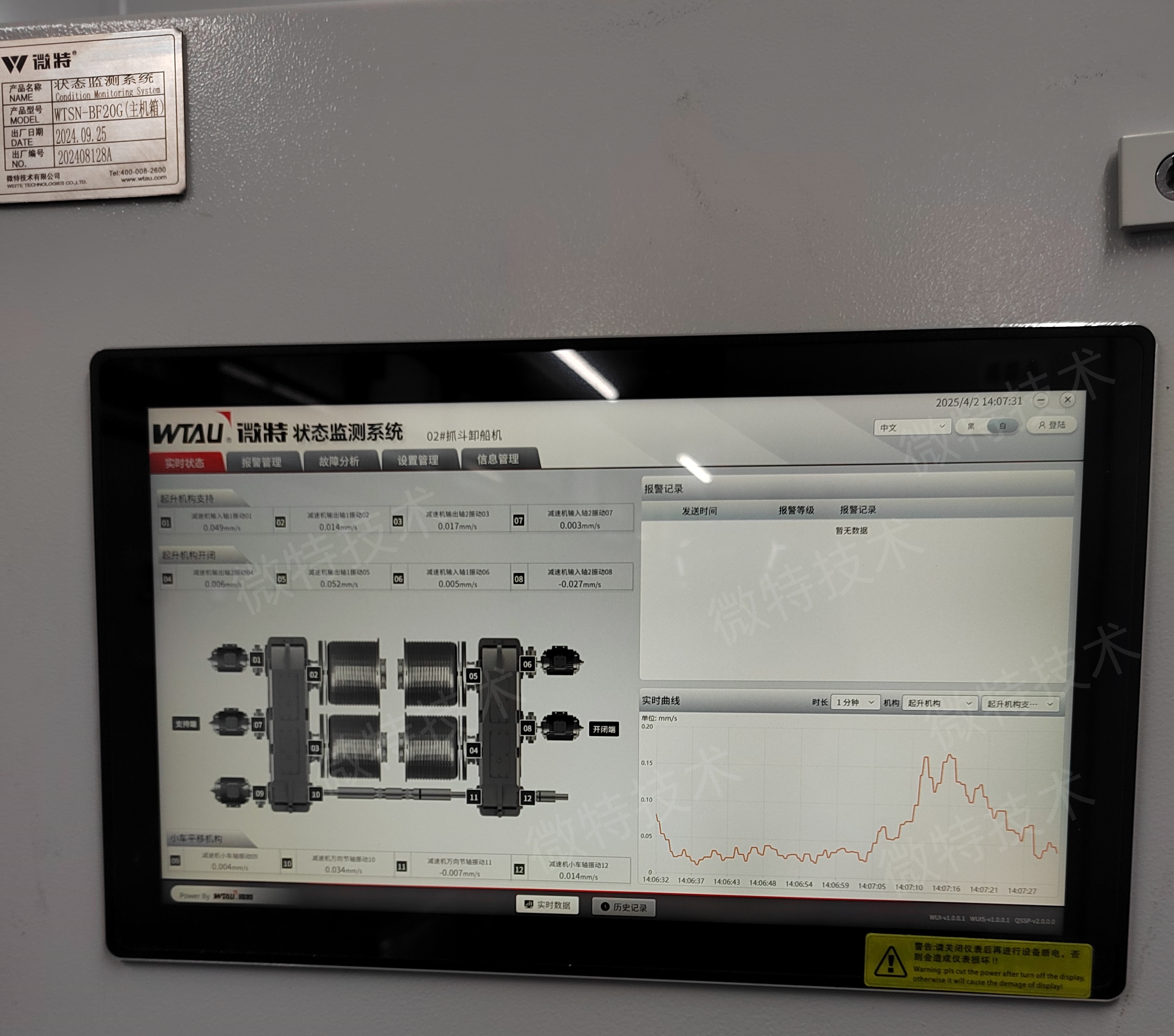 微特卸船機(jī)狀態(tài)在線監(jiān)測(cè)系統(tǒng)檢測(cè)精準(zhǔn)高效,實(shí)時(shí)在線監(jiān)測(cè)設(shè)備,無需停機(jī)停產(chǎn)即可分析故障類型、位置及程度,并可提前30天預(yù)測(cè)隱患;系統(tǒng)采用多維度綜合智能診斷,采集振動(dòng)、聲音、溫度數(shù)據(jù),具備雙語切換功能,通過AI算法的深度分析實(shí)現(xiàn)故障診斷報(bào)告;實(shí)時(shí)了解設(shè)備健康狀態(tài),提前預(yù)警并科學(xué)安排維保計(jì)劃,有效避免停機(jī)和事故的發(fā)生。