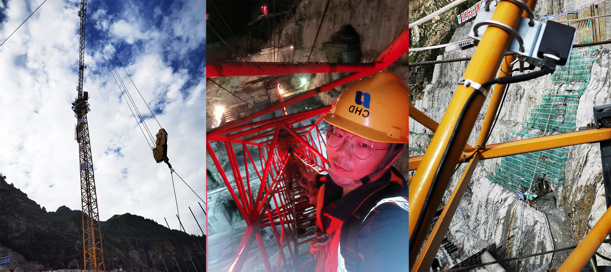 說起來也挺有意思,每次只要花了十幾分鐘帶著工具設備好不容易爬到了一號門機臂桿頂端的檢修平臺,立馬就會下場雨。最初還會趕緊往回走,但往往還沒走下臂桿雨就停了,太陽又出來了。后來也就不在乎了,下雨了就檢查固定臂桿上的安全帶,靜靜等雨停了再繼續(xù)工作。有時為了趕工期 也會持續(xù)加班到深夜,直到固定好了所有設備,光線完全無法滿足工作需求了才回去。