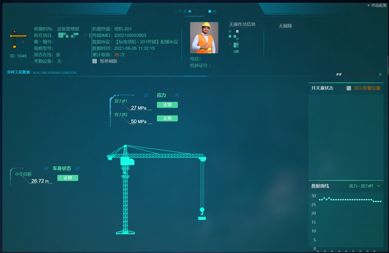 1.根據(jù)不同的起重設備,配置不同位置、數(shù)量的應力傳感器,用于獲取起重機主關鍵部位的下?lián)闲巫?、應力影響,記錄其應力變化?/span>