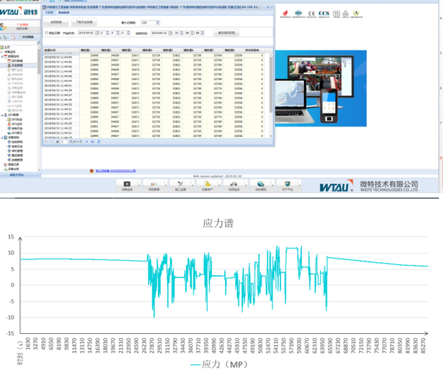 此次安裝,主要是應業(yè)主要求,在條件有限情況下,完成對設備的應力及位移進行監(jiān)控。同時,設備還加了遠程軟件系統(tǒng),將現(xiàn)場監(jiān)控數(shù)據(jù)傳輸?shù)?strong>微特遠程監(jiān)控平臺,在平臺上進行數(shù)據(jù)展示、數(shù)據(jù)報警、短信提醒等功能。