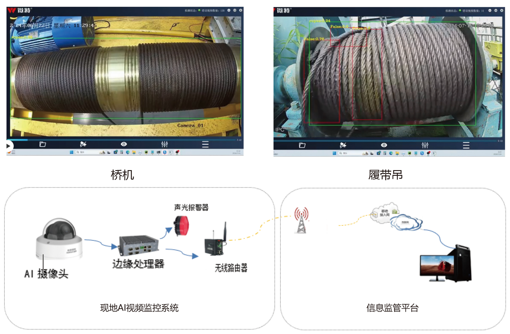 微特技術(shù)有限公司開發(fā)的基于視頻的AI識別技術(shù)可以很好的監(jiān)測卷筒鋼絲繩的排列,滑輪鋼絲繩是否松脫等多種安全隱患,提供報(bào)警提醒操作工,確保卷揚(yáng)機(jī)的正常運(yùn)作提升鋼絲繩的使用效率和安全性。