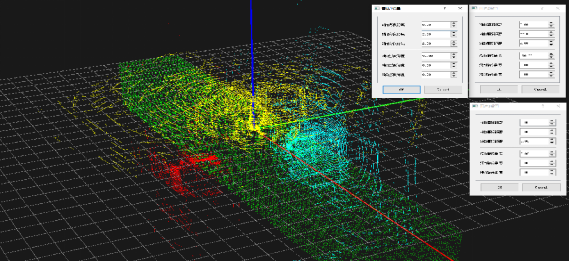 傳感器采用混合固態(tài)多線激光云臺(tái)雷達(dá),通過激光發(fā)射組件快速旋轉(zhuǎn)的同時(shí)發(fā)射高頻率激光束對(duì)外界環(huán)境進(jìn)行持續(xù)性的掃描,獲取點(diǎn)陣列(光)散射到障礙物表面的點(diǎn)云圖案數(shù)據(jù),即障礙物在 360° 區(qū)域環(huán)境中的 3D 信息。在以配置的防碰撞系統(tǒng)軟件運(yùn)用PCL算法庫為基礎(chǔ),獲取到障礙物點(diǎn)云的聚類(即對(duì)物體的三維云識(shí)別)并提取出來,然后計(jì)算障礙物點(diǎn)云到指定平面的最小距離,實(shí)現(xiàn)障礙物最近點(diǎn)的監(jiān)測。