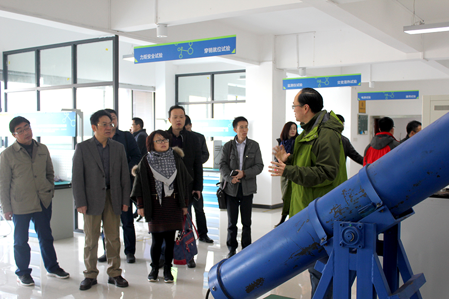 在微特電子智能吊裝檢測中心技術(shù)總監(jiān)高鈺敏向來訪團隊介紹實驗設(shè)備及產(chǎn)品檢測過程