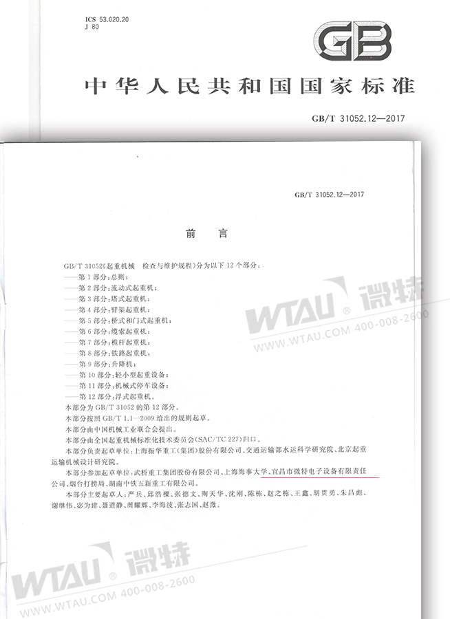 作為專業(yè)領(lǐng)域的佼佼者,微特電子成為全國起重機(jī)械標(biāo)準(zhǔn)化技術(shù)委員會(huì)臂架式分會(huì)、電氣工作組分會(huì)、橋式和門式分會(huì)技術(shù)委員。截至2017年,先后參與了4項(xiàng)國家標(biāo)準(zhǔn)的起草。