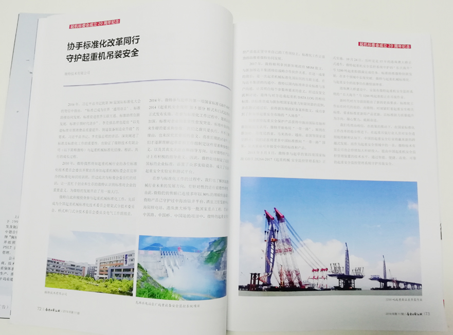 近期,署名微特技術(shù)有限公司的文章《協(xié)手標(biāo)準(zhǔn)化改革同行 守護(hù)起重機(jī)吊裝安全》在中國(guó)科技核心期刊《起重運(yùn)輸機(jī)械》雜志“起機(jī)標(biāo)委會(huì)成立20周年”專題報(bào)道中發(fā)表。