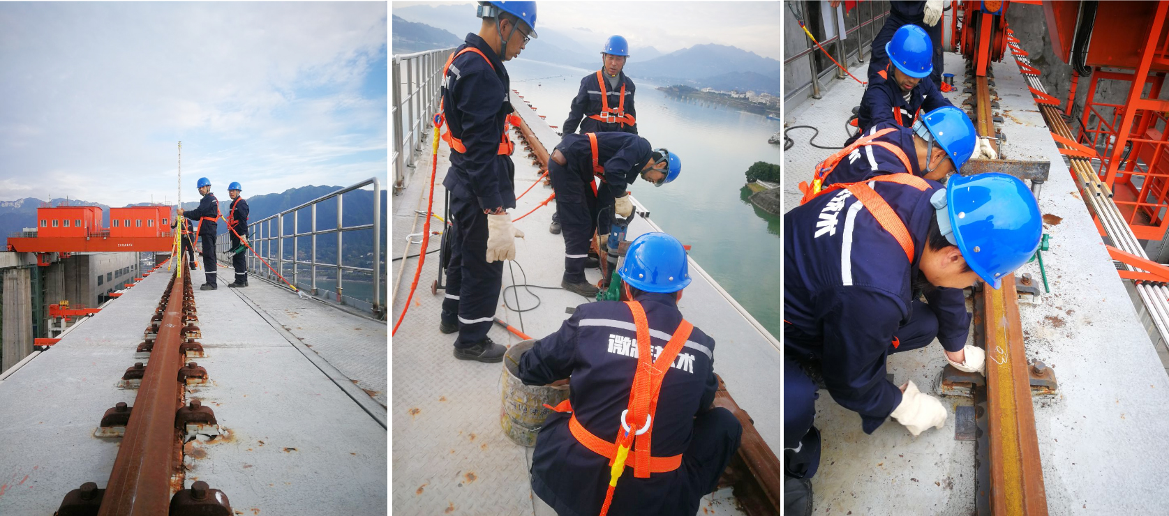▲橋機(jī)軌道檢測(cè)及軌道調(diào)整施工