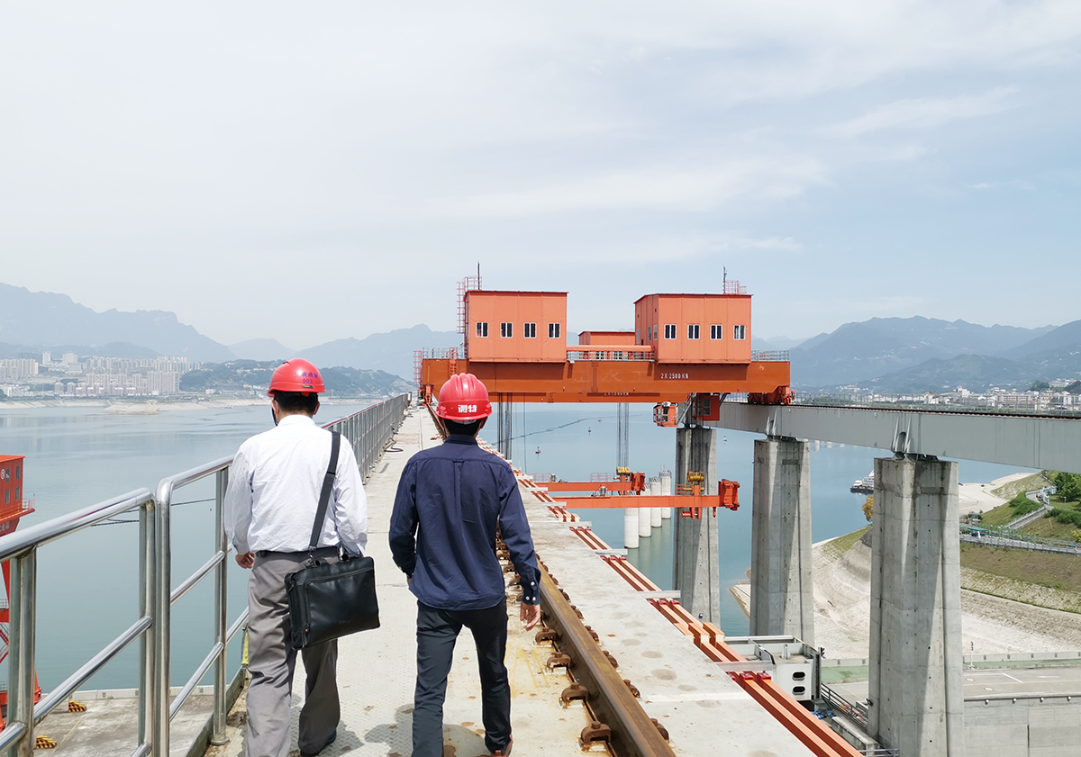 ▲微特技術(shù)人員配合三峽通航管局領(lǐng)導(dǎo)檢查現(xiàn)場(chǎng)施工情況