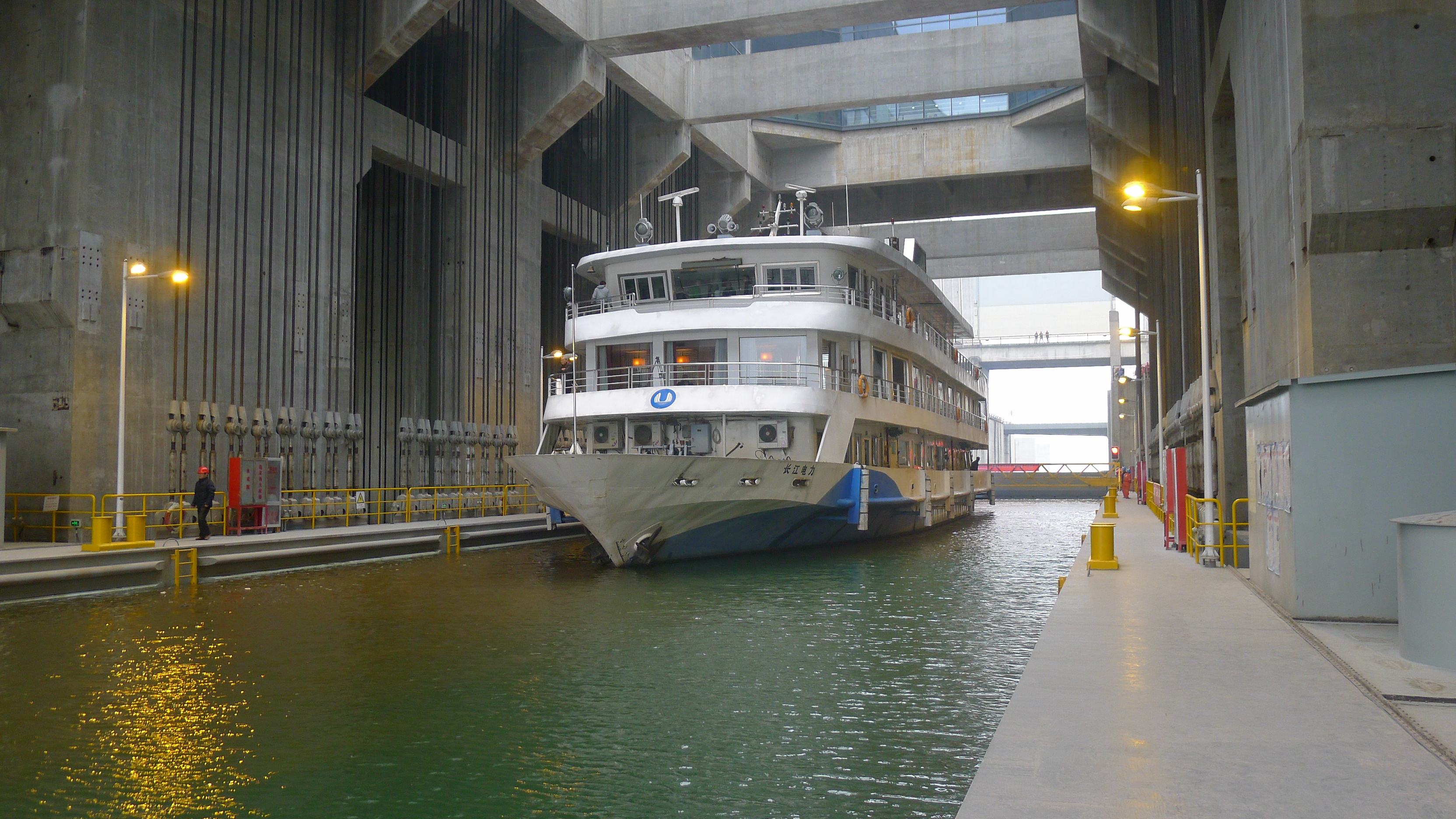 船舶如果要順暢往返于上下游,就必須通過三峽樞紐工程的雙線五級(jí)梯級(jí)船閘或垂直升船機(jī)。