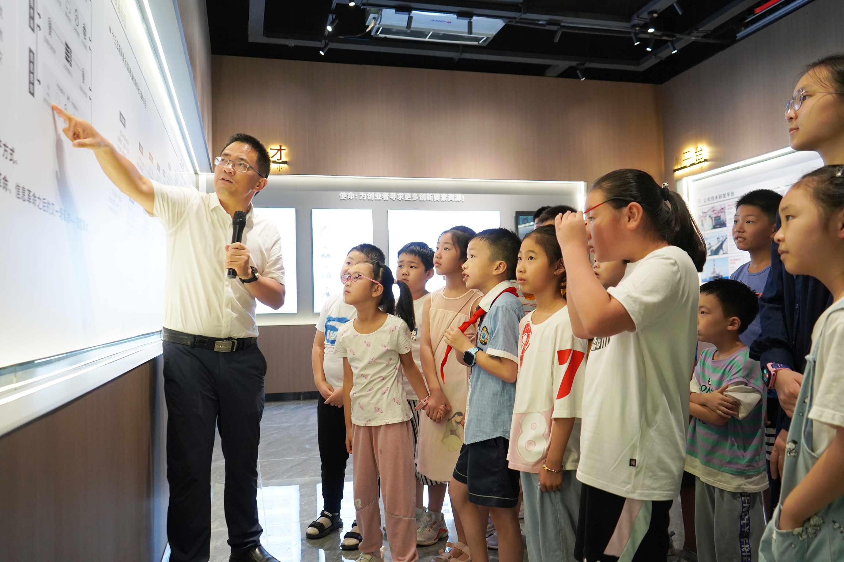 開放日活動的第一站在湖北傳感物聯(lián)產(chǎn)業(yè)技術研究院展廳進行,現(xiàn)場由董事長聶道靜與施工機械李巍帶領孩子們參觀了解起重機械相關科技產(chǎn)品與萬物物聯(lián)的前沿科技。