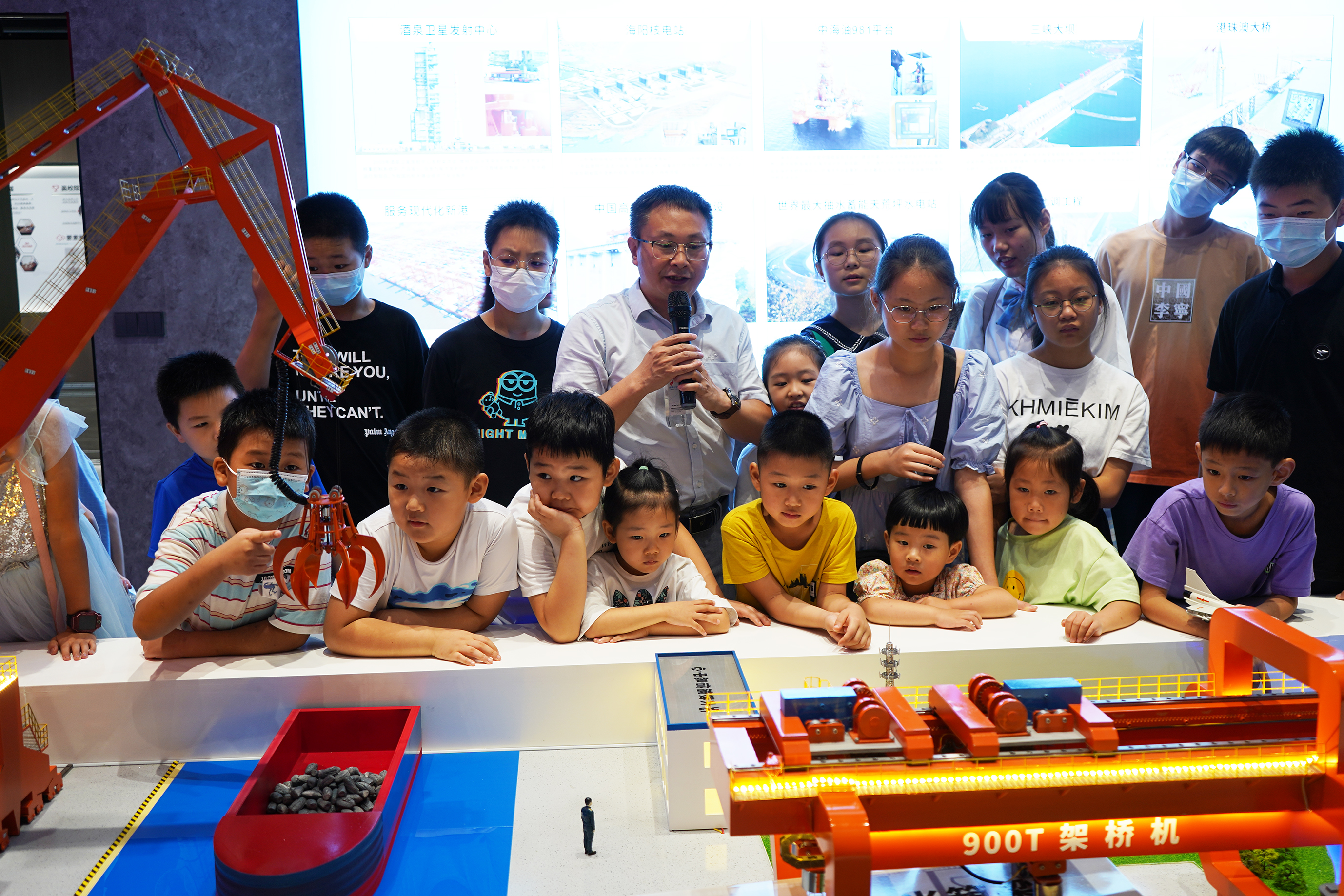 隨后的沙盤模擬展示了門座機和架橋機的運行方式,更是令孩子們目不暇接,通過架橋機的模擬運行孩子們第一次知道了原來大橋是這樣建成的,也對微特是做什么的有了最直觀的認識和了解。