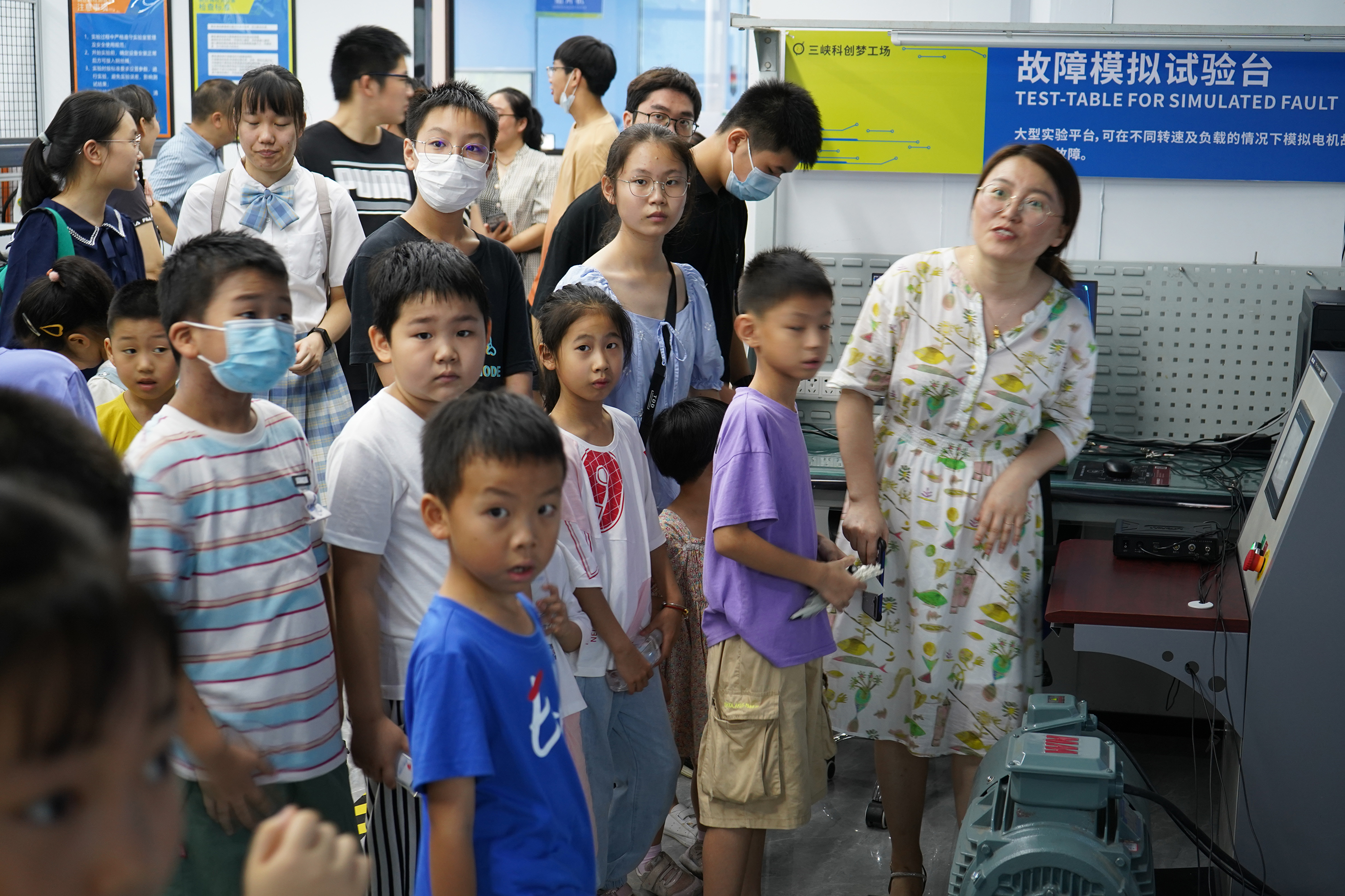 第二站孩子們來到了三峽眾創(chuàng)工坊,在這里孩子們參觀了電路板自動化生產(chǎn)過程,也各自動手體驗了簡易電路板的制作,在機械故障模擬試驗臺了解了機械設備生病后我們是如何檢測的。