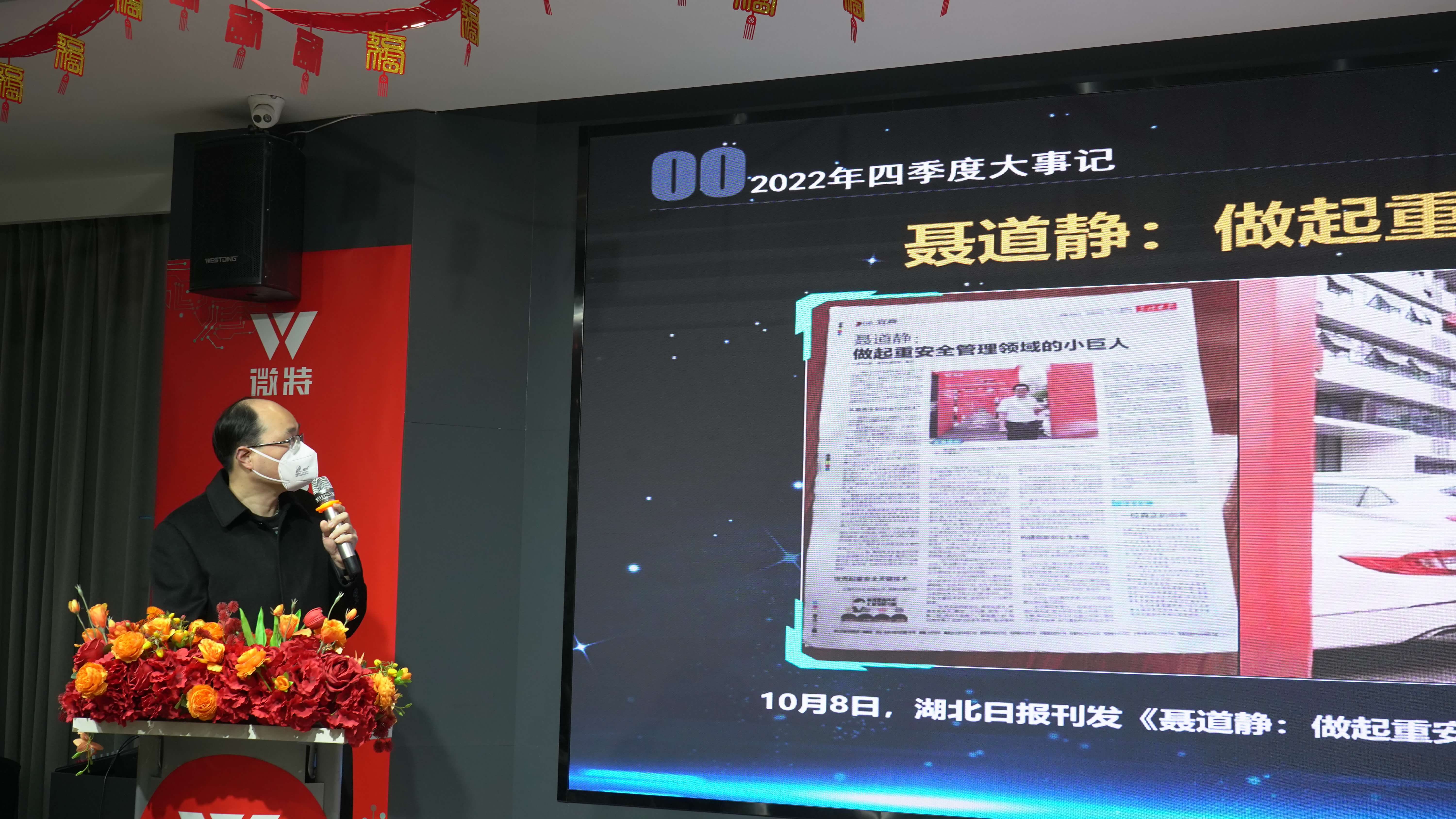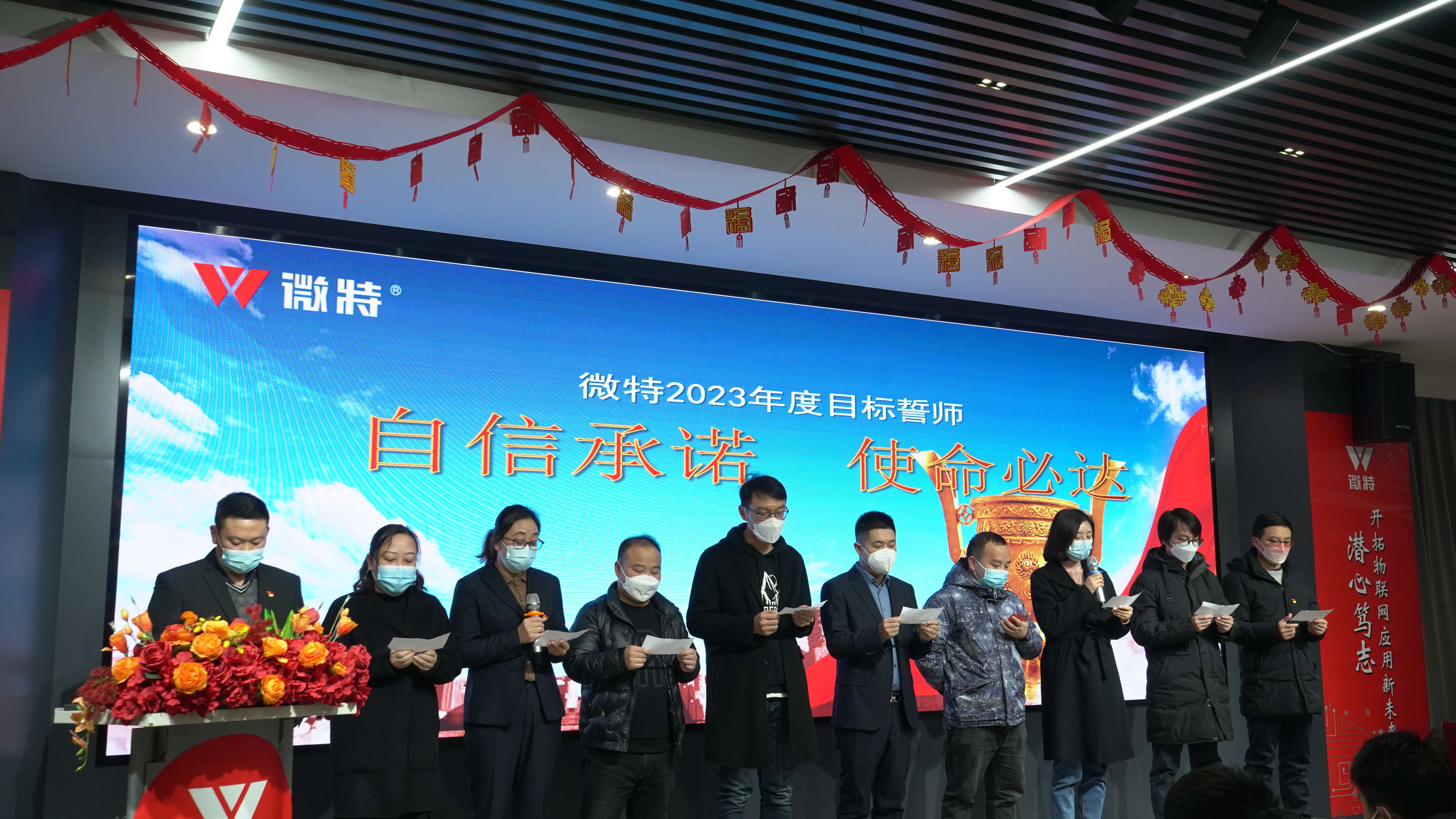 2023年1月7日上午,微特技術(shù)有限公司在設(shè)計樓一樓大會議室召開了2022年第四季度總結(jié)表彰會及新年誓師會。會議由管理中臺黃紅主持召開,會議內(nèi)容主要為第四季度進行階段性總結(jié),表彰在第四季度中各崗位先進代表,同時各部門主管上臺宣講2023年目標(biāo)及誓師口號,公司董事長聶道靜及總經(jīng)理高鈺敏分別對2023年作工作講話。