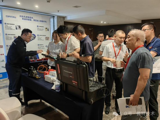 交流會(huì)現(xiàn)場(chǎng)微特的鋼絲繩在線檢測(cè)、起重機(jī)旋轉(zhuǎn)部件故障診斷分析、IA視覺(jué)等產(chǎn)品受到行業(yè)用戶的廣泛關(guān)注和青睞。