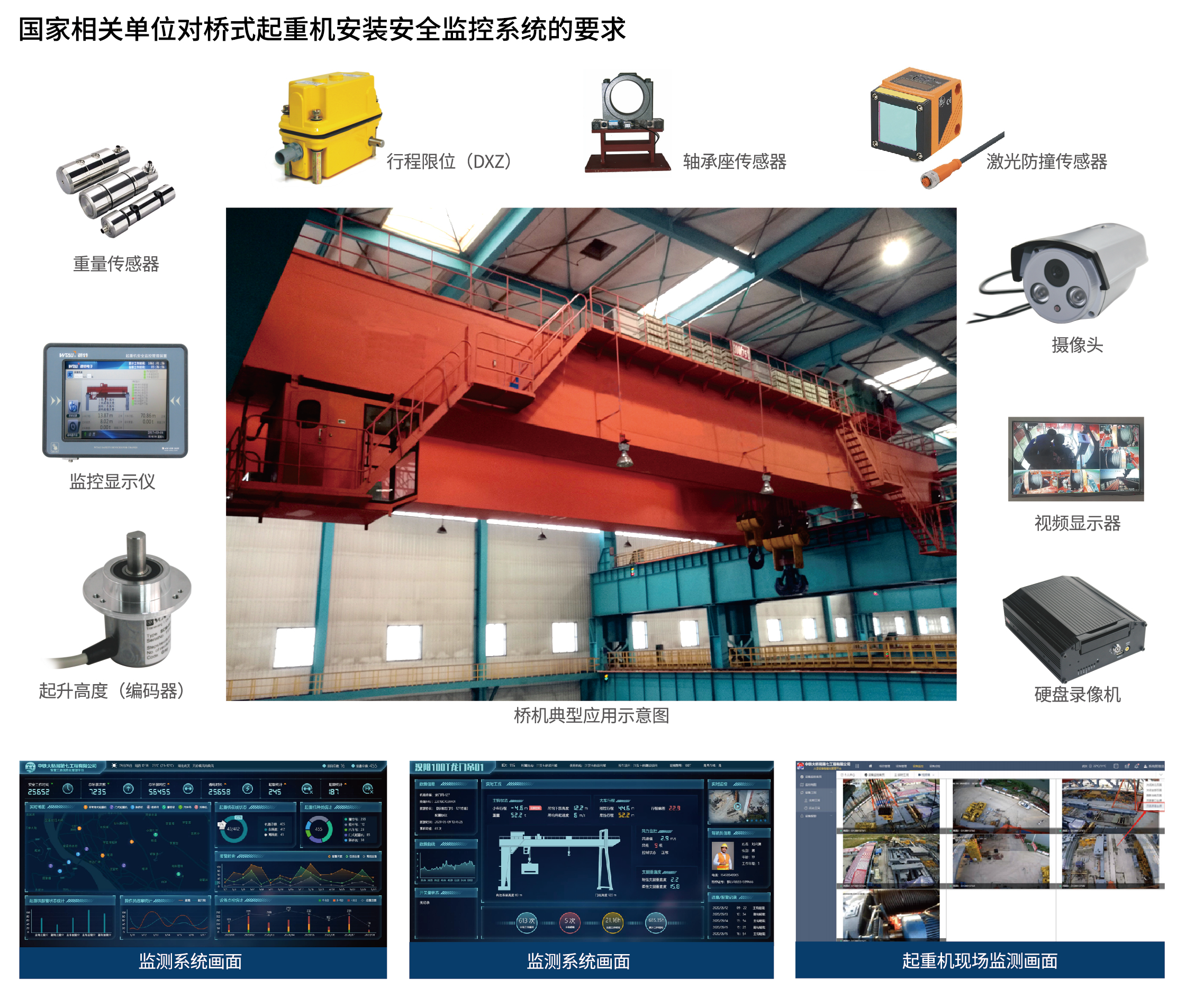 因此,起重機(jī)就需要安裝一套對吊機(jī)的各個工作環(huán)節(jié),各個安全點(diǎn),各類工況,各類指令的綜合性的安全監(jiān)控系統(tǒng), 用來保證起重設(shè)備的安全運(yùn)行,操作人員的安全,提高工作效率,降低安全隱患。