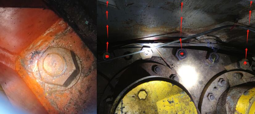 直接測(cè)量螺栓受力情況及預(yù)緊力衰減的變化情況:通過(guò)超聲縱波測(cè)量螺栓按當(dāng)前設(shè)計(jì)工藝安裝完成后,不同分布螺栓安裝后的受力(預(yù)緊力)情況,和一段時(shí)間內(nèi)螺栓受力(預(yù)緊力衰減)的變化情況。