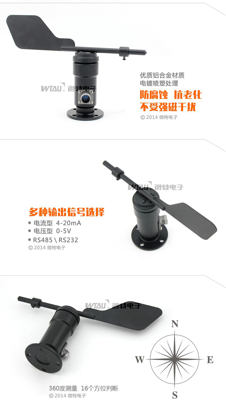 SC/FX風向傳感器采用優(yōu)質(zhì)鋁合金型材質(zhì),外部進行電鍍噴塑處理,具有防雨、防腐蝕、抗老化、抗強磁場干擾能力。該傳感器可測量室外環(huán)境中的風向,測量分東、西、南、北、東南、西南、西北、東北等十六個方向,具有很高的性價比。該儀器廣泛應用于環(huán)保、氣象、農(nóng)業(yè)、林業(yè)、水利、建筑、科研及教學等領域。