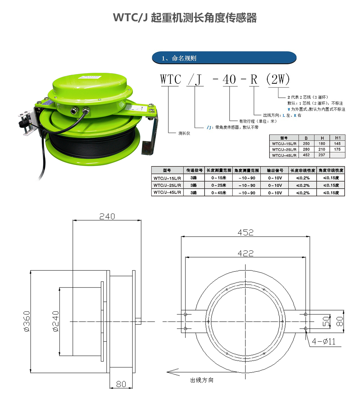 WTC/J起重機(jī)測長角度傳感器適用于具有伸縮吊的各類起重或其它類型機(jī)械。