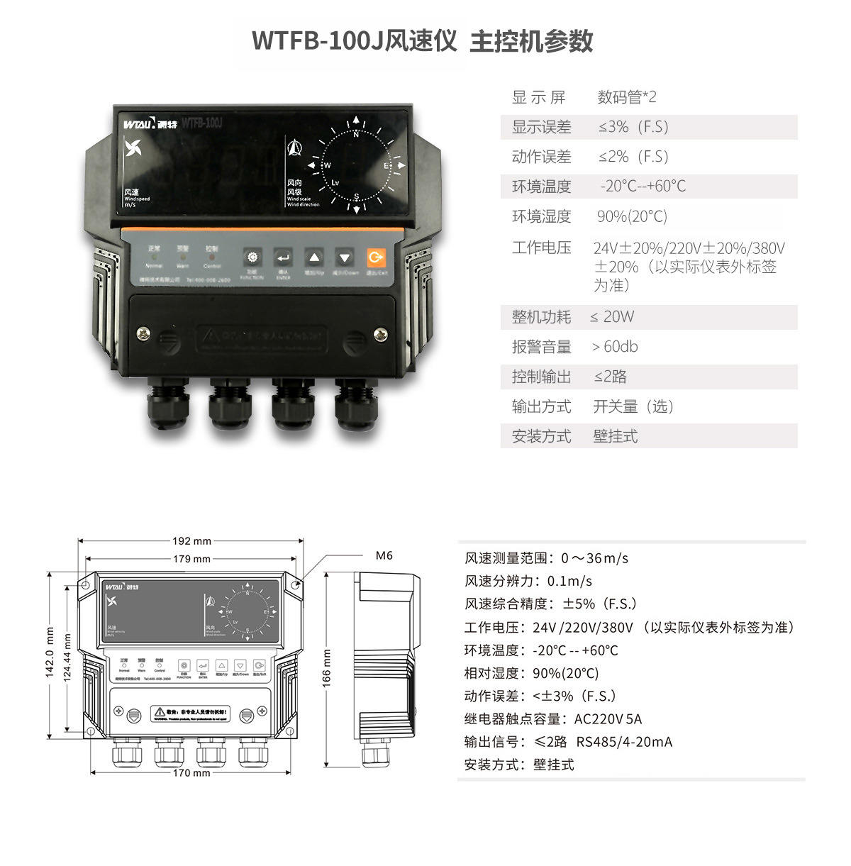 WTFB-100J風速報警儀監(jiān)測風速范圍為0~36m/s。產(chǎn)品穩(wěn)定性高、抗干擾能力強,檢測精度高,風杯機械強度高、抗風能力強,顯示器機箱設(shè)計新穎獨特,堅固耐用,安裝時免調(diào)試,適用于不同工作環(huán)境的大風監(jiān)測報警及控制。