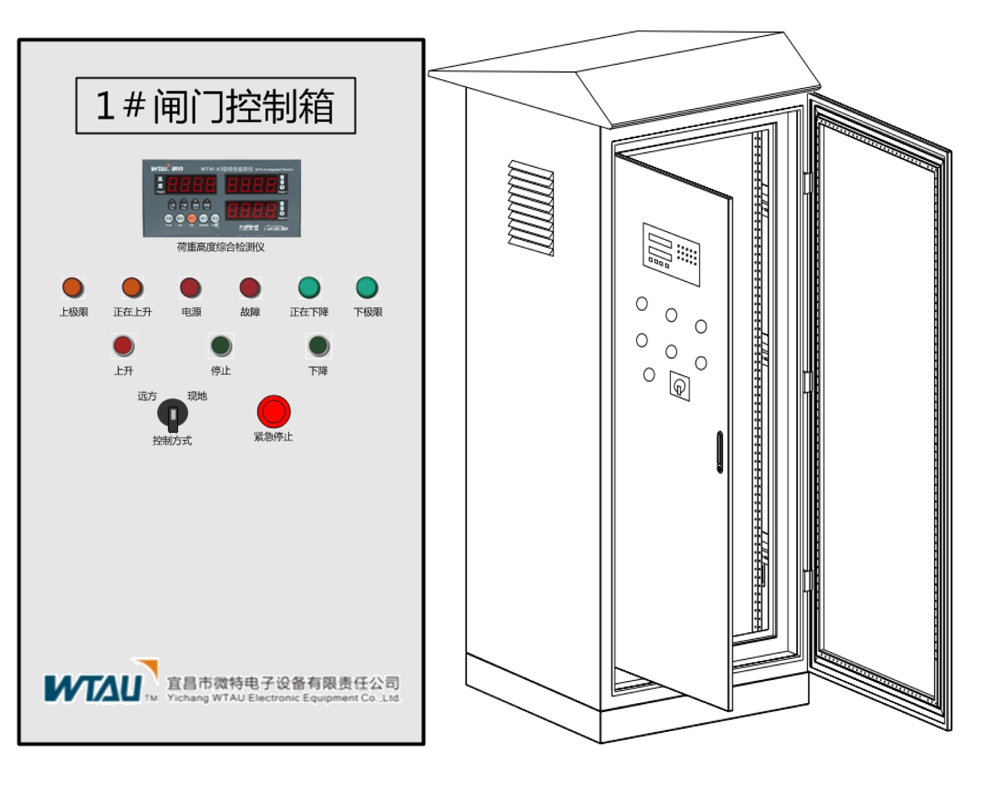 控制箱設(shè)有斷相保護、上限保護、下限保護、荷重保護。當閘門開至上限時,閘門將不能繼續(xù)上升。