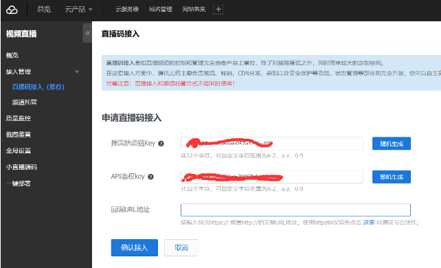 點(diǎn)擊【推流生成器】獲得直播推流地址,下面會(huì)具體列出【推流地址】,播放地址等,可以根據(jù)自定義的ID,生成一批推流地址,然后配置到服務(wù)器通道CDN地址中